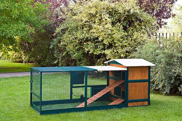 Wenn Sie tagsüber nicht zu Hause sind oder abends mal früher weggehen möchten, sind die Hühner im Schlechtwetterauslauf sicher vor Raubtieren und können sich trotzdem im Freien aufhalten.